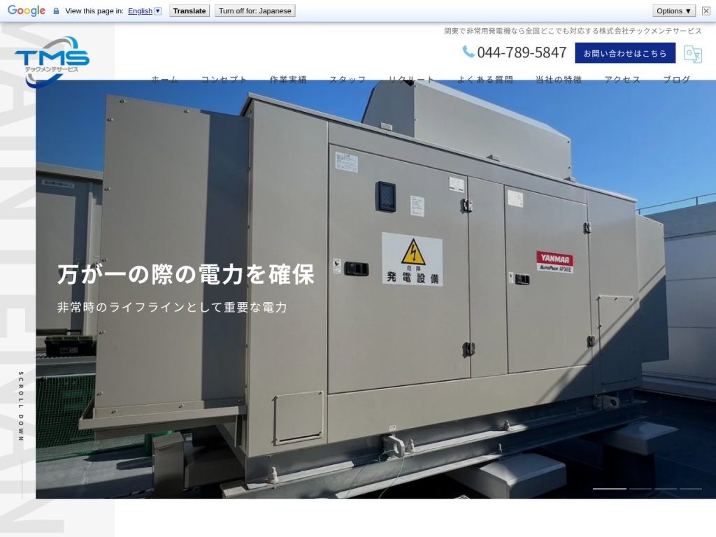 | 定期点検(実負荷) | 年2〜4回 | 実負荷運転、出力・電圧確認、燃料系統点検 | 専門業者(株式会社テックメンテサービス等) |
